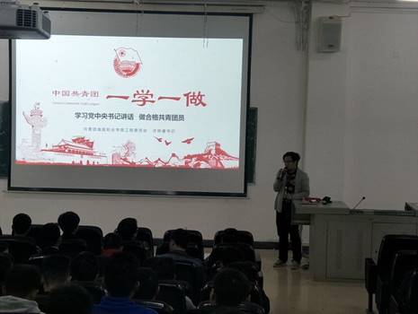 由工程系团总支许翀睿书记讲解了一学一做的重要精神。合格的团员应该是有信念、讲规矩、有纪律、讲品德、有品行、讲奉献、有作为。围绕学习习近平总书记系列重要讲话精神和治国理政新理念新思想新战略,在组织生活方面,以团组织基本单位,以“三会两制一课”等团员教育管理制度为基本依据,集中开展好组织生活会、入团仪式,加强和整顿规范基层组织。学是前提、是基础。要把深入学习习总书记系列重要讲话精神和治国理政新理念新思想新战略贯穿始终,教育团员学而信、学而用、学而行,树立远大志向、坚定理想信念,深刻认识到,维护习近平总书记的核心地位,就是维护党中央权威;维护党中央权威,首先要维护习近平总书记的核心地位,更加自觉地向习近平总书记学习和看齐,更加坚定地维护党中央权威。做是着力点、落脚点。做合格共青团员,要在在作为上合格,对党绝对忠诚,自觉践行党的理论和路线方针政策,自觉践行社会主义核心价值观,在青年中发挥模范带头作用,在经济社会发展各项急难险重任务中当好生力军和突击队。其实,开展“一学一做”教育实践,是旗帜鲜明坚持党的领导,学习习总书记系列重要讲话精神和治国理政新理念新思想新战略的重要举措。是贯彻中央群团改革决策部署,深化共青团改革攻坚的重要实践。是推进从严治团、增强团员先进性和光荣感、为实现中国梦凝聚青春力量的重要抓手。