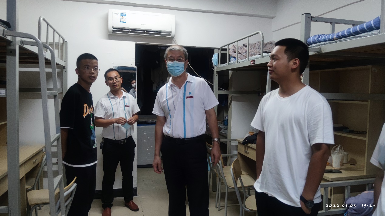 本网讯工程技术学院许翀睿报道 9月2日、3日为我校本科新生开学报到时间,两天晚上学校副校长王云、就业办主任陈慧银、学院院长赖志刚、学院党委书记张大林、学院党委副书记沙吉豹及团学办主任、新生辅导员老师等一行分别前往学生宿舍12、13栋走访慰问2022级新同学。