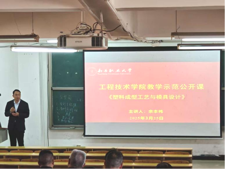 本网讯工程技术学院程飞报道 3月25日周二下午14:20,学院公共教室一举行了一场别开生面的示范公开课。余本祎老师以《塑料成型工艺及模具设计》为题,为师生呈现了一堂兼具理论深度与实践指导性的精彩课程。校领导孙金岭、教学质量监控处徐小娟老师亲临现场检查指导,示范课由学院副院长高科主持,吸引了众多教师及学生到场观摩学习。